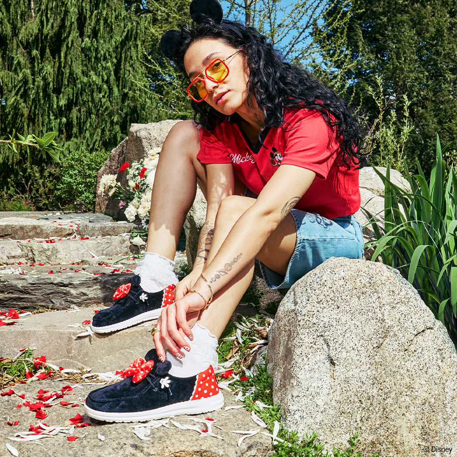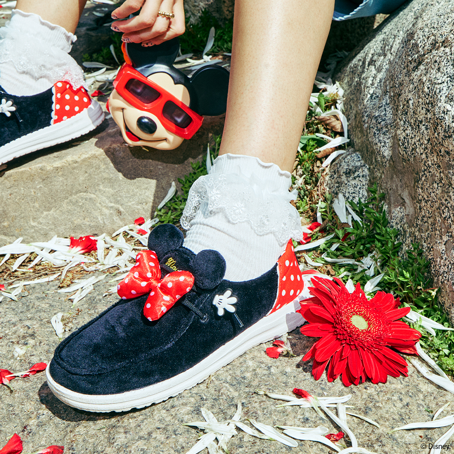 Everyone’s favorite sweetheart is now on a HEYDUDE?/span> shoe. The Wendy Funk Minnie has you Disney-decked from bows to toes. Featuring Minnie’s signature polka dot pattern. a Minnie hand lace cover. Minnie ears and black and white Minnie head print lining; this shoe is so cute it will make you blush. Perfect for Disney lovers of all ages.