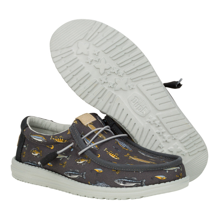 The catch of the day. For your feet. The Wally Fish Lure has all the features of our classic moc. with an angler’s print in three distinct styles. Easy-on laces let you slip in and cast away. quick. Removable foam insoles and lightweight outsoles keep things comfy. If you’re gonna hook anything. make these kicks your first catch.